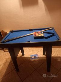 Biliardo carambola 90×50 con due stecche in legno da 90cm, più 15 palle numerate in dotazione. Ps. Il tavolo comprende anche la copertura per il gioco del ping pong, più un altro gioco di cui mi sfugge il nome. Solo consegna a mano
