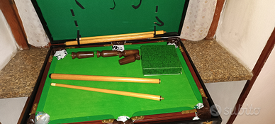 Biliardo da viaggio con piedini in legno avvitabili stecche in legno avvitabili palline originali x giocare e con la sua valigia x trasporto tenuto bene