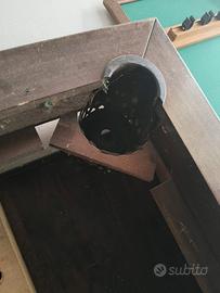 Biliardo cm 250x140, con piano in legno per diventare tavolo, stecche e porta stecche. Il panno è da cambiare ma si fornisce il panno nuovo da montare. Il biliardo, come si vede dalle foto è smontato