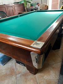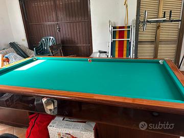 Sul legno vi sono dei graffi e segni di usura ma il panno è stato cambiato nel 2022 ed è come nuovo. Si vende completo di biglie e triangolo