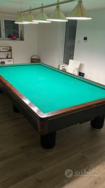 Biliardo hermelin come nuovo, riscaldato, serie di palline per l’italiana la goriziana boccette set di stecche birilli porta stecche e conta punti elettronico. Do anche il lampadario.