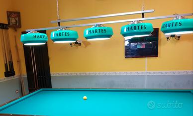 Biliardo hartes mod. multilame Misure campo gioco 284x142 Piano in ardesia termoriscaldato Vernice in buono stato ACCESSORI Lampada a 5 campane originale Porta stecche a muro stecche da corredo Bilie da 61.5 aramith 2 buste birilli nuovi Gesso 12 pz Segnapunti elettronico Centralina di riscaldamento Prezzo 1800 Ritiro a carico vostro Possibilità di trasporto e montaggio e sostituzione panno. Costo aggiuntivo Per ulteriori informazioni o preventivi su biliardo, carambola, calcio balilla, pingĵ pong, biliardino, bigliardino non esitate a contattarci anche telefonicamente al oppure al numero fisso Lucartec biliardi