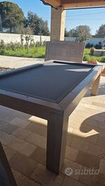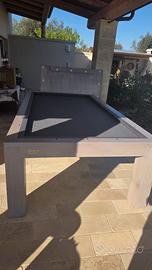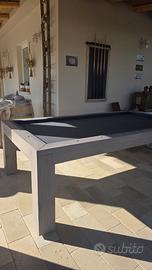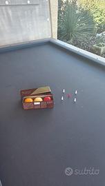 Vendesi a Sanarica provincia di Lecce biliardo all'italiana ROGAI (FIRENZE) – utilizzabile anche come comodo tavolo da soggiorno - ottime condizioni in quanto poco utilizzato - dimensione chiuso cm. 263x 148 (aperto perde circa 2,5 cm perlato) – altezza cm. 82 - lastra unica di circa 200 kg - costruito su misura e in quanto tale unico sul territorio nazionale , panno grigio, parti in legno color lavanda, completo di stecche di misura variabile e porta stecche da muro, tavola segnapunti, set palle da biliardo, gessetti, birilli - come ulteriore accessorio una lampada vintage che renderà l'ambiente ancora più magico - costo smontaggio e trasporto a TOTALE carico del compratore - disponibile alla visione in loco – Poco trattabile