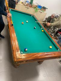 Biliardo buche strette campo gioco mt 2x 1 ,buone condizioni con copertura uso tavolo ,ci mangiano 10 persone completo di stecchiera stecche biglie triangolo gessetti ,il trasporto montaggio e eventuale panno nuovo si paga a parte Antonio 3284637020