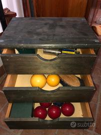In più un mobiletto con cassetti dove ci sono altre biglie, gessetti, punte per stecche!