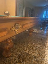 Biliardo MBM modello M21 in ottime condizioni ,completo di stecche, porta stecche, bilie da gioco da 8/15, italiana e boccette, gessetti, lampadario, panno copri biliardo e guanti. Misure 316 x 176x78.