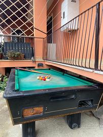 Vendo biliardo in buone condizioni strutturali. Il tavolo è solido e stabile, ma necessita di rifacimento del tappeto superiore (panno), motivo per cui il prezzo è vantaggioso.