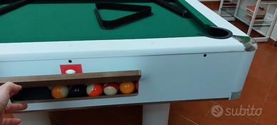Tavolo Biliardo trasformabile in Tavolo da Pranzo, Biliardo e Ping Pong con Sistema Raccolta Biglie Nascosto, Gambe Cilindriche, Accessori Inclusi comprese Biglie.