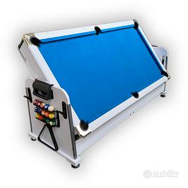 Tavolo da biliardo multi-gioco bianco con panno di colore blu, che diventa Air Hockey, Ping Pong e Tavolo!