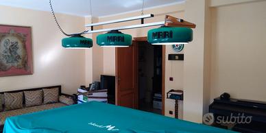 biliardo pool mari in noce. lo vendo completo di specchiera, 4 stecche in resina, lampadario, segnapunti, biglie, triangolo e rombo in legno.