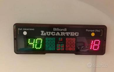 Biliardo professionale Pietro Mari riscaldato e dotato di stecche + 1 lungha, portastecche, segnapunti elettronico lampadario e tutto quanto necessario per il gioco (palle, boccette, misura distanza, gessetti, birilli) e telo di copertura. Smontaggio e ritiro carico dell'acquirente.
