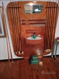 Biliardo professionale Hermelin, modello Marca Oro, completo di stecchiera originale, quadro con istruzioni giochi e set palle per tutti i giochi (Italiana, goriziana, bazzica, boccette, americana).