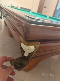 Vendo elegante biliardo professionale all’italiana con buche strette, realizzato in legno massello con finiture in ottone.