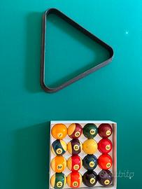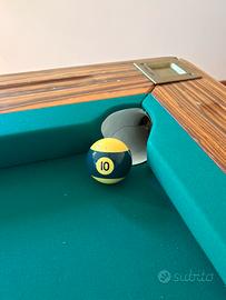 Biliardo a buche strette completo di set di palle, triangolo, stecche e portastecche.