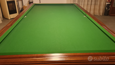 Biliardo Ursus 270x135 in ottime condizioni. Inserti removibili foderati per poter giocare sia all' Italiana senza buche che all' Americana con le buche. Completo di riscaldamento. Veramente full optional: lavagna da 5 cm, sponde americane, portastecche completo di stecche, segnapunti, lampadario, set di biglie per gioco all' Italiana, set di biglie per gioco all' Americana, set di biglie per boccette, telo di copertura. Smontaggio e trasporto a carico dell' acquirente.