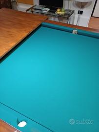 Ursus biliardo classico praticamente nuovo. Completo di tavola di copertura di legno pregiato formato da tre pezzi, stecche, palle, birilli, segnapunti. Fascino e compagnia