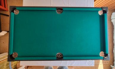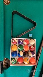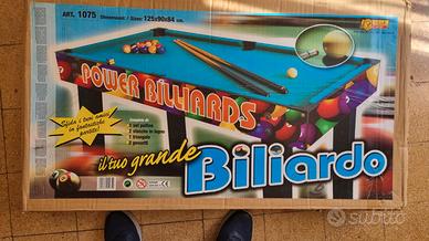biliardo Villa in ottime condizioni in quanto utilizzato pochissimo, completo di 2 stecche in legno,biglie e triangolo. Nella sua scatola originale. Misure 108x57x75.
