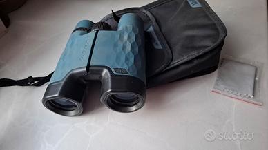• QUALITÀ OTTICA Prismi e lenti in vetro minerale di qualità K9 con trattamento anti-riflesso MgF2, per una maggior luminosità. Obiettivo da 32 mm permette di raccogliere più luce per conservare i colori naturali della scena osservata. • Nitidezza dell'immagine Sistema ADJUST: regolazione della nitidezza per osservazioni da corta a lunghissima distanza (da 20 m circa a infinito) e per i panorami. . • Regolazione per chi porta occhiali da vista Alette retrattili per adattarlo agli occhiali da vista. In questo caso, per poter attaccare gli occhiali al prodotto senza rischiare di danneggiarli, devi solo abbassare gli occhielli in gomma. • COMFORT E RESISTENZA Ottima presa e comfort grazie al rivestimento in silicone. Il silicone assicura una buona resistenza all'urto e un'ottima tenuta • Accessori Venduto con un girocollo e una custodia per proteggerlo da urti e polvere e per facilitarne il trasporto. • COME REGOLARE I BINOCOLI Per correggere lo scarto di visione tra i 2 occhi: chiudi l'occhio destro e metti a fuoco un oggetto a circa 50 metri con la rotella centrale. Una volta che l'oggetto è nitido, chiudi l'altro occhio e ripeti l'operazione questa volta mettendo a fuoco con l'anello vicino all'oculare destro. Lo scarto così è risolto. Non è necessario regolare questo anello in futuro.
