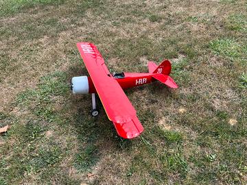 Modello biplano Stearman di circa 1,40mt di apertura alare solo collaudato, completo di servi e motore praticamente con 10 minuti all’attivo.