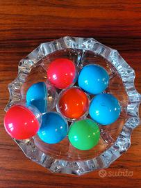 N. 8 biglie da spiaggia in plastica raffigurante ciclisti, anni '70.