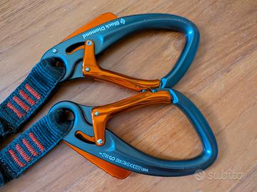 Black Diamond Easy Riderè facile da agganciare ed è dotato di un innovativo meccanismo di blocco / sblocco del gancio del moschettone che consente di scalare qualsiasi percorso attrezzato con stile ed efficienza. Due moschettoni Easy Rider hanno meccanismi interni di bloccaggio con attivazione a pressione per un facile utilizzo con una sola mano. Il sistema include un anello di riposo per il collegamento diretto quando necessario. Il Dyneema EAS è progettato per utenti di peso compreso tra 40 e 120 kg in conformità alla norma EN 958: 2017 Peso: 492gr