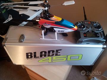 Elicottero radiocomandato Blade 450 con radiocomando Spektrum DX6i con schermo retroilluminato.