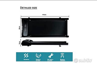 BLBK Tapis roulant Elettrico, senza manubrio, con telecomando, l’ampio display si trova a capo della pedana, piu 3 spray silicone per ammorbidire il tappeto