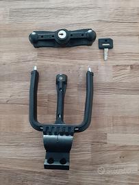 Vendo antifurto Fabbri per due caschi integrali. È nuovo, nella scatola originale (rovinata) e gli accessori sono ancora sigillati nei sacchetti di nylon. L'antifurto ha l'apertura a sfilamento con serratura centrale. All'interno della struttura, un'anima d'acciaio della circonferenza di sei millimetri.
