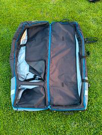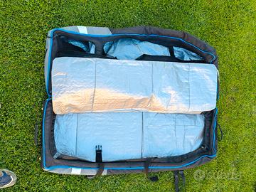 board bag da aereo o trasporto kite (kitebag) ci sta tutta l'attrezzatura kite per una o due persone ... vani separati per poter portare una solo metà board bag alla volta oppure tutta units per aumentare la portata ... comode ruote e cinghie di compressione usata per un paio di viaggi