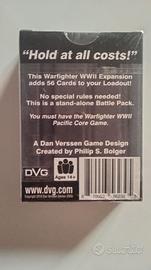 Warfighter WWII: Espansione #56 – Tarawa; DVG 036BM. Designer: Philip S. Bolger-Cortez; Editore: Dan Verssen Games. ---- Per quattro giorni, nel novembre del 1943, circa 2600 marinai provenienti dalle Forze da Sbarco Speciali della Marina Imperiale Giapponese combatterono nel Pacifico centrale per impedire al Corpo dei Marines degli Stati Uniti di stabilire una testa di ponte sull’isola di Betio, nell’atollo di Tarawa. In inferiorità numerica di oltre cinque a uno, e senza alcuna possibilità di ritirata, le SNLF combatterono quasi fino all’ultimo uomo: soltanto 17 soldati giapponesi lasciarono l’isola vivi, tutti come prigionieri di guerra. Questo Battlepack è incentrato sulle Azioni Difensive dei marinai delle SNLF che contrappone la loro disciplina al potere militare del Corpo dei Marines degli Stati Uniti. Contiene: 2 x Soldati Giocatore (Giapponesi) - 2 x Soldati Non Giocatore (Giapponesi) - 2 x Soldati di Squadra (Giapponesi) - 7 x Armi - 1 x Equipaggiamento - 2 x Abilità - 4 x Missioni - 4 x Obiettivi - 12 x Luoghi - 20 x Nemici.