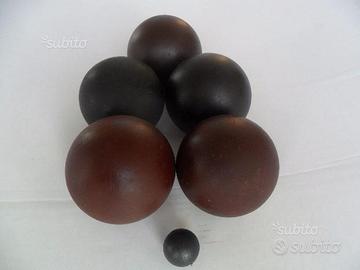 Numero 5 bocce con diametro variabile da 103 mm a 106 mm con boccino da 35 mm.Peso variabile da 820-960 e 1050 gr a seconda delle dimensioni.