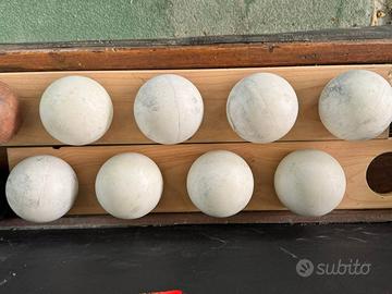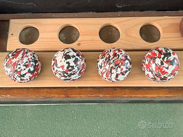Disponiamo di 6 diversi set di bocce di misure tra il 106-107 di diametro e 900-920g di peso. Con retativi boccini. (Uno x set) Non per tutte disponiamo della scatola, A mano a Treviso, o possibile spedizione. (la tariffa dell'annuncio è relativa solo ad una singola serie di 4 bocce. Per 2 serie, 3... si passa alle tariffe superiori, da verificare) Costo 70€ in blocco 15 euro a set singolo da quattro bocce