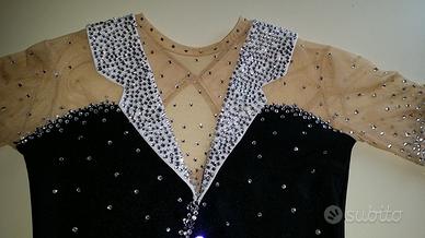 Vendo body bianco nero su misura, con maniche a guanto e strass crystal,usato 1 volta