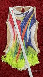 Body da competizione ginnastica ritmica realizzato a mano su misura impreziosito da strass colorati. Ottime condizioni