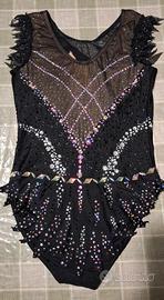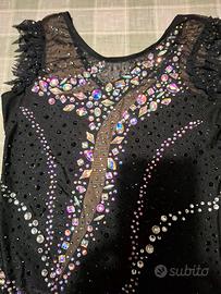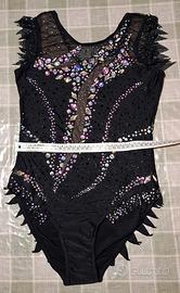 Body da gara di ginnastica ritmica. Decorato interamente a mano con oltre 2000 strass. Indossato una sola volta. Misure uovo: 62cm; petto: 34 cm; vita: 30cm. Molto elastico. Ideale per ginnasta alta 145-155cm.