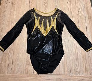 Body da Gara Ginnastica Artistica punto GYM in laminato con strass, manica rete a tre quarti usato una volta SOLA!!! Tag. 40
