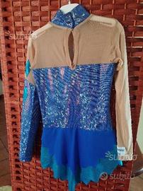 Body bimba azzurro lucido effetto luccicchio, per ginnastica Ritmica.