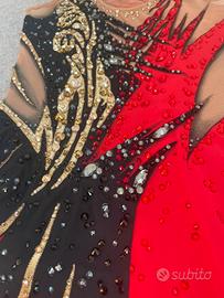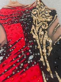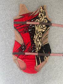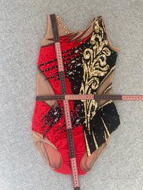 Vendo body nuovo per ginnastica ritmica, fatto per ginnasta alta circa 145 cm, girouovo 125cm, girotorace 64cm, girovita 57cm, girofianchi 70cm. 165 pietre cucite+circa 1960 strass. Per altri foto e video contattatemi. Visibile a Torino.