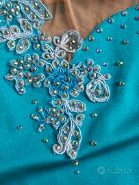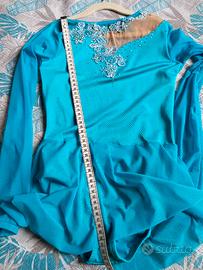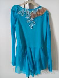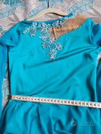 Body sartoriale pattinaggio artistico 10 12 anni, maniche lunghe, azzurro, misura uovo 132cm, va bene per bambina altezza 150 cm circa
