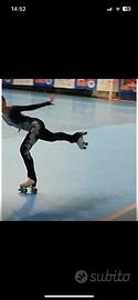 In perfette condizioni, usato davvero poco in quanto ho smesso di pattinare. È una tuta comodissima, piena di svaroski. Ha anche un reggiseno (taglia secoda) cucito, ma si può facilmente togliere (vedere foto).