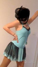 Body pattinaggio acquistato ma con modifiche sartoriali, pertanto ben curato e rifinito con pizzo e Swarovski, 12 - 14 anni ( ma vestibilita' x un paio di taglie) . Lunghezza spallina cavallo 72 cm