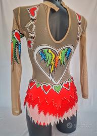 body intarsiato in lycra e rete nudo,ricco di strass ,in ottime condizioni,mai utilizzato tg.42