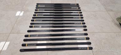 N. 15 Bodyblade, attrezzo di allenamento a vibrazione utile per rinforzare e stabilizzare i muscoli del core, delle spalle, delle braccia e della schiena, che a loro volta possono migliorare la performance generale e la postura. Può essere usato come allenamento complementare per sviluppare forza, stabilità e propriocezione, aiutando a prevenire infortuni, specialmente legati alla spalla e al cingolo scapolare, e migliorando il controllo del corpo. Lunghezza 122cm.