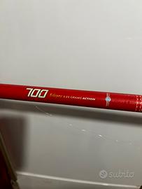 Canna da pesca per bolognese Globe fishing Hypnos 7 metri Canna in carbonio alto modulo HQ, montata con anelli a ponte lungo in SIC. Sul cimino sono presenti 3 scorrevoli che consentono una curvatura progressiva oltre ad agevolare la fuorisciuta del monfilo. Azione di punta rigida e allo stesso tempo sensibile, 5/25 grammi, adatta a galleggianti, vetrini o ad una piccola piombatura, che permette di pescare sia in lago che in mare dalla scogliera. Placca e tappo in acciaio color canna di fucile, impugnatura con vernice antiscivolo. Usata non moltissimo, in quanto pesco per divertimento e non sono un accanito, ma ho vinto una canna più importante ad una lotteria e quindi do questa via. Un paio di segni di usura ma assolutamente nulla di compromettente.