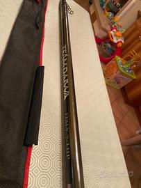 Bolognesi Team Daiwa Italy whip 10 mt Per collezionista e pescatori di fama Daiwa. La canna è stata provata da me stesso, acquista per pescarci su porti , canali acqua profonde Range terminale 0.10- 0,14 gestito ottimale Buon acquisto rimango a disposizione. Per foto video contattarmi solamente interessati Prezzo non trattabile.