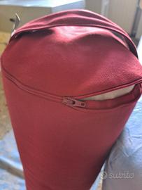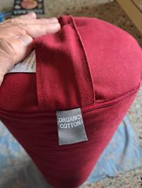 Vendo cuscino Bolster eco per Yoga e Pilates cilindrico fatto in India. Misure 65 x 23 cm Ca di diametro. Imbottitura in pula di farro biologico. Rivestimento in cotone biologico robusto colore bordeaux. Sfoderabile. Usato poche volte.