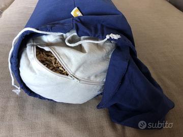 DETTAGLI DEL PRODOTTO - Lunghezza: 67 cm | Diametro: 22 cm | Fodera: cotone (agricoltura biologica controllata) | Materiale dell’imbottitura: pulsa di farro | Chiusura: a cordoncino.
