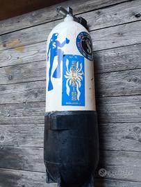 Bombola subacquea singola in acciaio Technisub Genova (brand storico italiano, poi confluito in Mares). Rubinetto originale Technisub Genova, fondello in gomma nera. Colore bianco/crema. Presente sticker originale AMF Mares Sub. Condizioni: usata, vernice con segni d'uso e distacchi, rubinetto con ossidazione superficiale. Struttura in acciaio integra. ⚠️ Collaudo idrostatico scaduto — da revisionare prima dell'utilizzo. Vuota, spedibile. Parole chiave: bombola sub Technisub, Mares sub, bombola acciaio singola, scuba diving tank, attrezzatura subacquea usata, bombola immersione Italia, rubinetto sub.