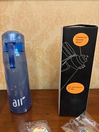 Borraccia Aii nuova, trasparente con dettagli blu. Include 4 pod aromatizzati al gusto frutta. Perfetta per idratarsi con stile! - Borraccia in plastica resistente. - Design elegante e pratico. - 4 filtri intercambiabili.