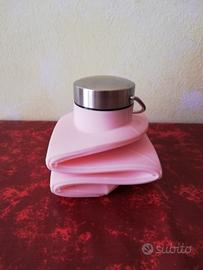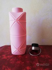 Borraccia salva spazio pieghevole. Tappo in acciaio , struttura in silicone. 750 ml - colore rosa confetto Mai usata. BPA free